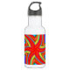 Un diseño o patrón geométrico atractivo predominantemente en tonos rojos y azules, pero también con amarillo, cian, púrpura y verde.