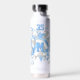 Esta divertida botella de agua con tema de voleibol chica presenta una "explosión" de formas estrella azul claro, gris y blanco y azul, gris y blanco - personalizar con el monograma o la letra varsity del atleta más nombre y número jersey - los paneles de voleibol lilac se mezclan con un patrón kaleidoscópico floral de aspecto texturizado - de katz_d_zynes