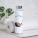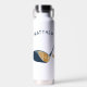 Stay hydrated out on the golf course with this personalized water bottle. It features a realistic style illustration of a golf club and golf ball in shades of blue and gold and is ready to be personalized with a name, initials or other custom text in matching navy blue lettering.