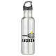 Botella de agua Metalizado de acero inoxidable Silver Gray, Black and White y personalizada con un nombre de monograma de raqueta de tenis simple, deportivo y moderno con un tipo de letra deportivo clásico con un sutil fondo de red de cancha de tenis.