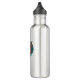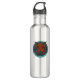 Una botella de agua con un personalizado de pulpo rojo oxidado con un tentáculo escarpado medio, curvado en todas direcciones y suckers de colores carnosos expuestos. Un balde de peces arroja por el fondo. Para los fanáticos de las octopuses y cefalópodos con actitud. Personalice con un sencillo cambio al texto editable que gira alrededor de la imagen. Personalizar que cambie el color del círculo de fondo verde del océano que rodea y muestra a través del fondo interior semitransparente.