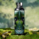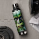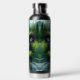 Un ilustracion de Bigfoot en una fresca exposición doble con bosque, río y montañas. Botella de agua con tema de Sasquatch de Guay.