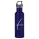Botella De Agua Guión cursivo editable Monograma Azul púrpura