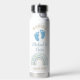 Celebra tu doble bendición con este diseño suave y dulce de gemelos. Con huellas azules de bebé, arcoíris pastel y nombres personalizados, esta botella de agua personalizada hace que un embarazo sentimental revele o que se quede con una ducha para mamás gemelas.