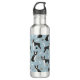 Perros de Boston Terrier con abrigos blancos y negros sentados y parados con huesos de perro dispersos y patrones de huellas de pata.