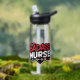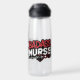Este vibrante y audaz pegatina presenta la frase "ENFERMERA BADASS" en letras grandes y llamativas. La palabra "BADASS" está escrita en rojo con una textura angustiada, mientras que "NURSE" está en blanco con una textura similar.