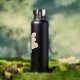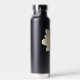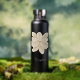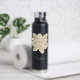 Design on both sides of your sports bottle. A large white jasmine blossom is depicted on a black bottle. A huge, beautiful white flower. And your name below it. Plus, in matching white script, your additional text on the back.