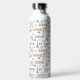 Una botella de agua que presenta un diseño de edificios franceses con anillos de colores para conmemorar los próximos juegos este verano en París. Capta el espíritu de los juegos y se puede usar para hidratar cuando se camina por Francia.