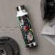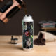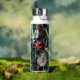 Una botella de agua con una foto de una mujer insecto.