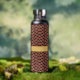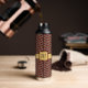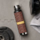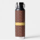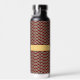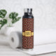 Una estampada de chevron a la moda presenta ricas capas rojas burdeos y blancas brillantes que se unen a las capas de la estética de leopardo. Una línea marrón profunda separa las columnas de chevron para un toque final elegante. Personalizar el monograma con su inicial para crear una botella de agua que sea única para su uso.
