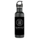 Frasco de agua de acero inoxidable negro simple y elegante para la marca de su negocio y la franja promocional de su empresa con el logotipo de su empresa y dos líneas de texto blanco que puede personalizar con su nombre, lema, lema, sitio web, número de teléfono, etc., o borrar. Cambie el color del fondo y la tipografía seleccionando "personalizar más adelante".