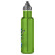 pintura acuarela tradicional de un camaleón colorido de color principalmente verde sobre una botella de agua de acero
