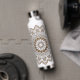Botella de viaje termal Gold Mandala; ilustracion original de Becky Nimoy