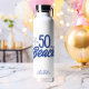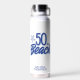 ¡Celebra este cumpleaños especial con esta botella de agua de cumpleaños 50 es de playa! Mano caprichosa dibujó doodle 50.ª botella de agua de cumpleaños de playa