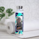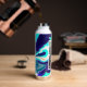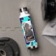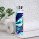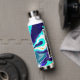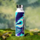 Arte digital fluido en botella de agua azul, blanca y verde lima o de café. Personalízalo añadiendo tu foto y nombre.
