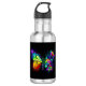 Arcoiris, mariposa monarca luminosa, pintada de forma artística con ramo de iridiscente, rosas brillantes y luminiscentes sobre fondo negro. Mariposa arcoiris.