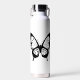 Botella de agua de mariposas blancas negras