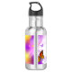 Naranja, mariposas monarcas detalladas sobre la luz, púrpura, pintoresco fondo pintado.