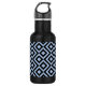 Este audaz patrón geométrico azul claro y negro es un diseño ornamental original. Los diamantes de color azul pálido con bordes negros están rodeados de pequeños meandros azules que los rodean. Los zigzags negros separan los sinuosos caminos azul claro y los diamantes de desvío. Imagen creada digitalmente. Copyright © 2014 Claire E. Skinner. Todos Los Derechos Reservados.