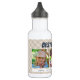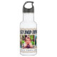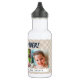 Esta botella de agua ofrece tres fotos para fotos de niños o papá. El texto azul oscuro "Mejor Papá Nunca" aparece encima de los marcos de la foto en un fondo de patrón de color claro y color marrón. Añade los nombres de los hijos de papá como un toque personal.
