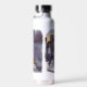Una botella de agua con un personalizado gracioso sobre un gato rogando en la acera. El texto y la imagen se pueden personalizar. Obra de arte original de DBcartoons.
