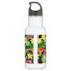Botella De Agua Mezcla tropical, flores y hojas en negro