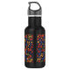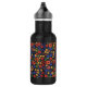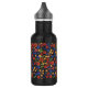 Una botella de agua negra de moda al personalizar, con un patrón de mini impresión floral de bonito en un fondo negro que se puede cambiar si se desea. Este patrón de color de papel pintado a mano, que forma parte de la colección "Granny Print" de Posh & Painterly, se puede ajustar fácilmente para que se ajuste a cualquier botella de agua.