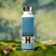 Botella De Agua Monograma bistró vintage en mosaico en azul y oro