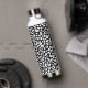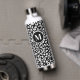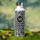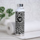 Diseño divertido y a la moda con este acento de estampado de leopardo o estampado de chita. Personalice esta botella de agua con una inicial. Incluso puedes añadir un nombre sobre la letra si quieres. Cambie el fondo y los colores de fuente y la tipografía a lo que desee. Incluso se puede cambiar el color de la estampación de leopardo. Moda Leopardo Blanco Negro Impresión animal Monograma Botella de agua