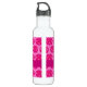 Botella De Agua Monograma de fucsia y modernidad rosa Damasco
