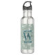 Botella De Agua Monograma de hojas botánicas verdes verde azuladas