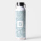 Botella De Agua Monograma de patrón botánico moderno azul claro