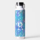 Botella De Agua Monograma de purpurina rosa azul de unicornio libi