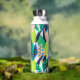 Botella De Agua Monograma del patrón de las hojas tropicales moder