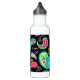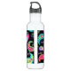 Botella De Agua Monograma del patrón paisley moderno turquesa negr