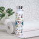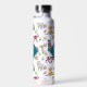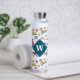 Botella De Agua Monograma del patrón y las flores de cosecha
