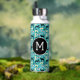 Botella De Agua Monograma del perro negro del gran danés Verde azu