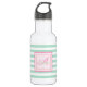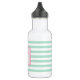 Botella De Agua Monograma en franjas verdes de menta personalizada