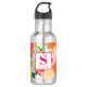 Frasco de agua botánica floral de moda con monograma y nombre. Diseño floral de acuarela de verano en bonito. Fácil de cambiar el monograma y el nombre de la página del producto.