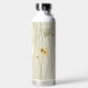 Botella De Agua Monograma floral moderno amarillo claro verde gran