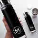 El diseño moderno de esta botella de agua presenta un rico fondo negro, con su monograma inicial en negrita en blanco para un aspecto sencillo y elegante, pero profesional.