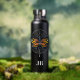Botella De Agua Monograma moderno negro y blanco con mariposa