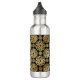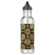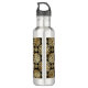 Frasco de agua monograma de Relieve metalizado negro de acero inoxidable y oro falso con un diseño floral moderno.