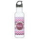 Botella De Agua Monograma púrpura del zigzag de Chevron del