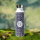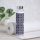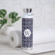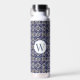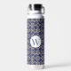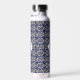Botella De Agua Monogramado geométrico azul Azulejo italiano blanc