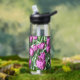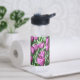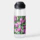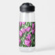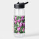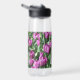 Manténganse acallados dondequiera que vayan con esta botella de agua clara y plástica que muestra la foto de un jardín primaveral de tulipanes morados. ¡Un bonito diseño floral! Seleccione su tamaño y color de la botella de agua.