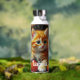 Botella De Agua Naranja y gatito blanco jugando en yarn