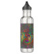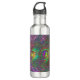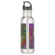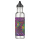 Esta impresionante botella de agua muestra una divertida fotografía festiva de algunas plumas de pavo real tomadas con fotografía macro. Se han utilizado técnicas de coloración artificial para enfatizar el detalle. El resultado es un efecto de mejillón morado con las cucharadas que muestran tonos rojos y verdes.