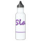 Imagen azul de neón de un esquiador del agua del eslalom con el texto "eslalom"
