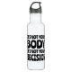 Diseño de texto con la frase "No es tu cuerpo, no es tu decisión". Defender la dignidad humana, la igualdad de género, los derechos de la mujer y la autodeterminación.